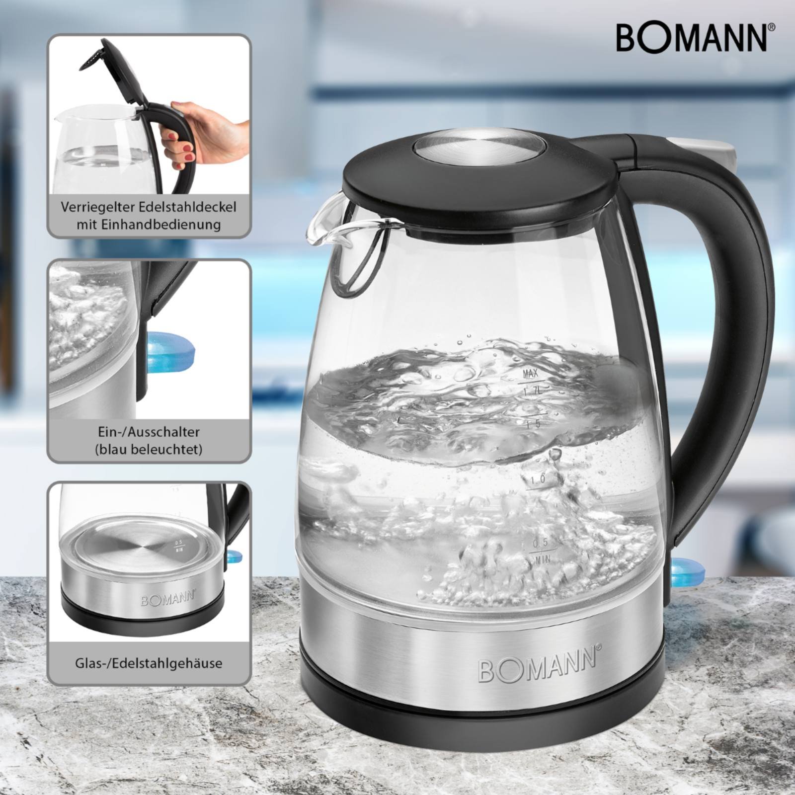 Bouilloire Electrique 1.7L 2200W Bomann WKS 6032