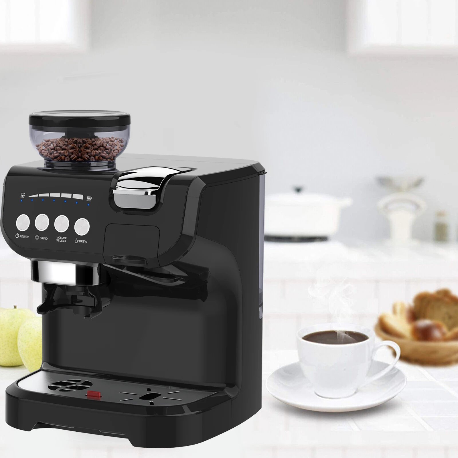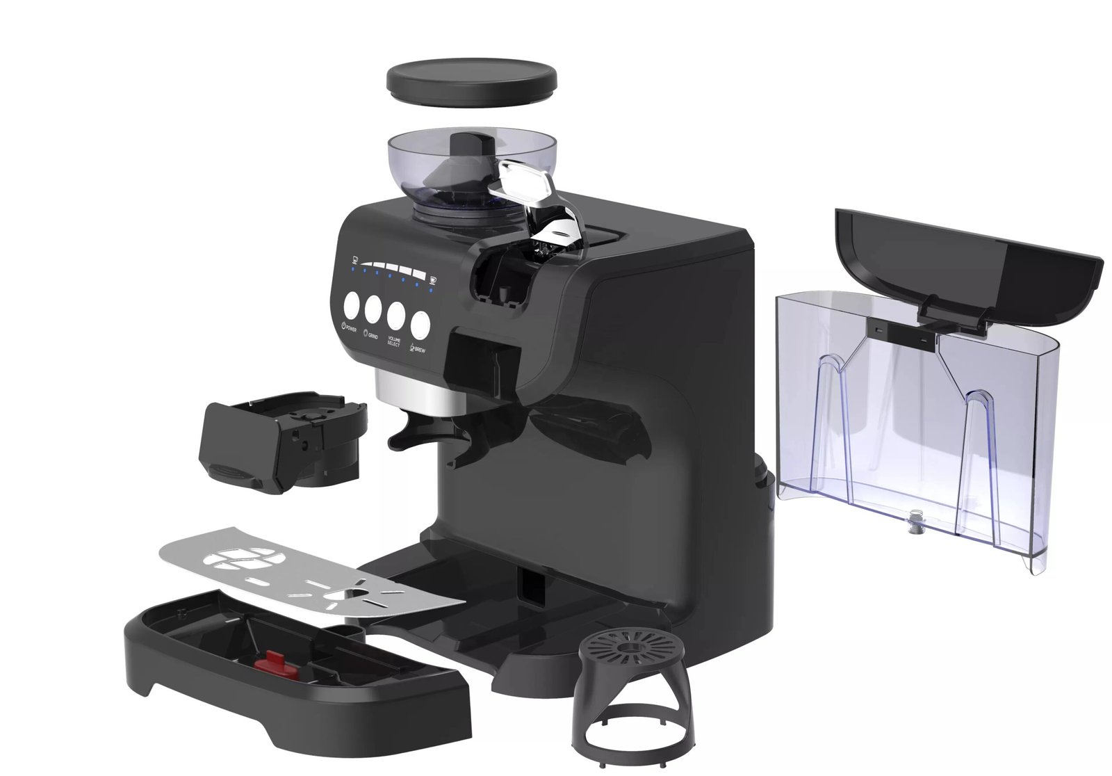 مضخة 19 بار / 7 مستويات لتحضير القهوة / ادخال و اخراج الكبسولات يدويا / متوافقة مع انضمة مختلفة : كبسولات نسبريسو – قهوة المطحونة / مفتاح تحديد مستوى مسحوق القهوة / خزان مياه شفاف قابل للازالة سعة 2لتر / طاقة 1450واط / يستقبل حامل مسحوق القهوة الطازج من وحدة الطحن / يمكن تحديد مستوى الطحن / يمكن تحديد مستوى تخمير القهوة في الكوب / قوة طحن القهوة 110 واط