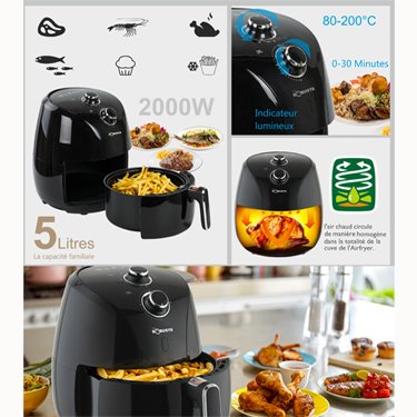 Friteuse Electrique- Sans Huile – AF5- 2000W -Noir