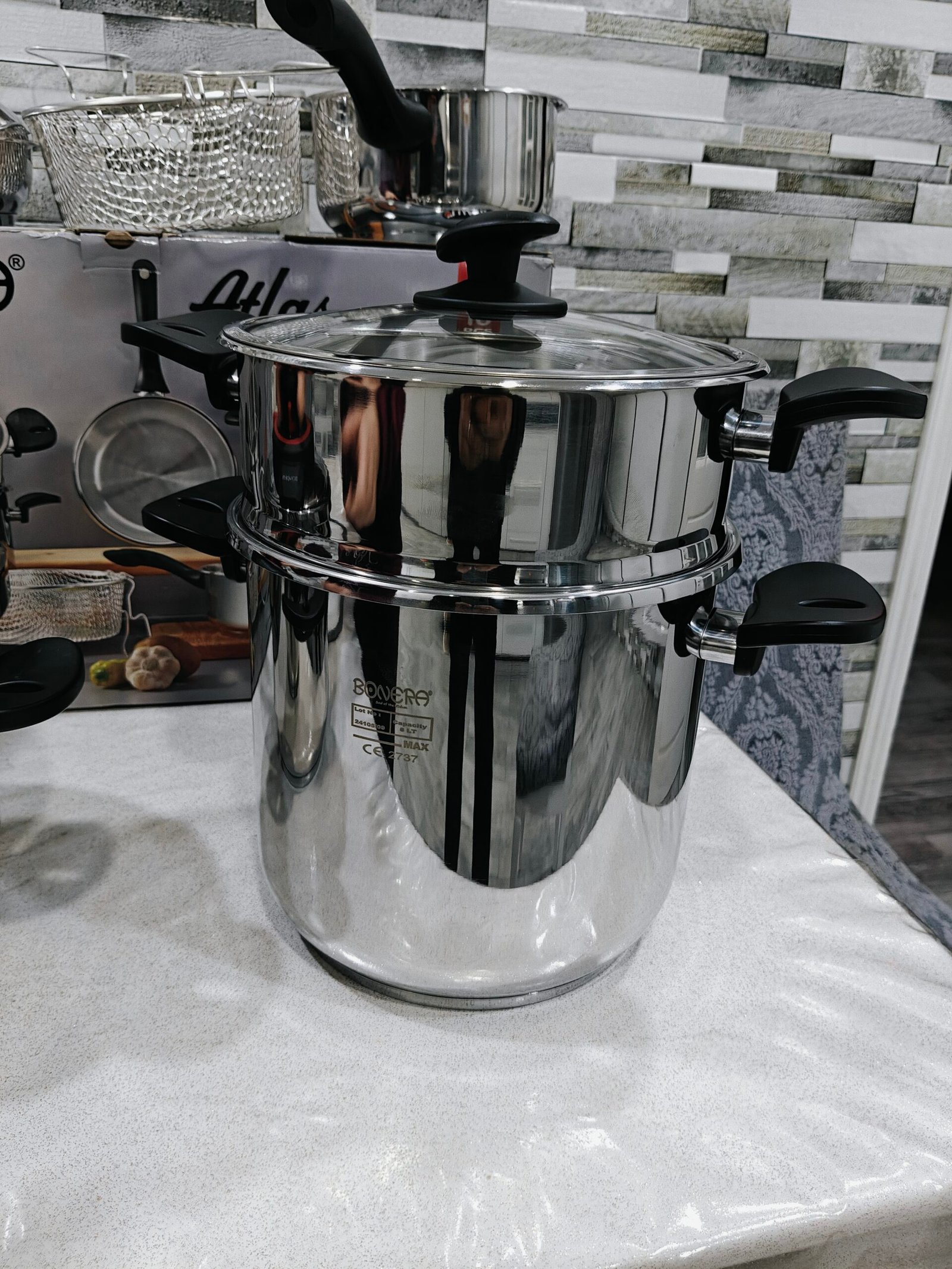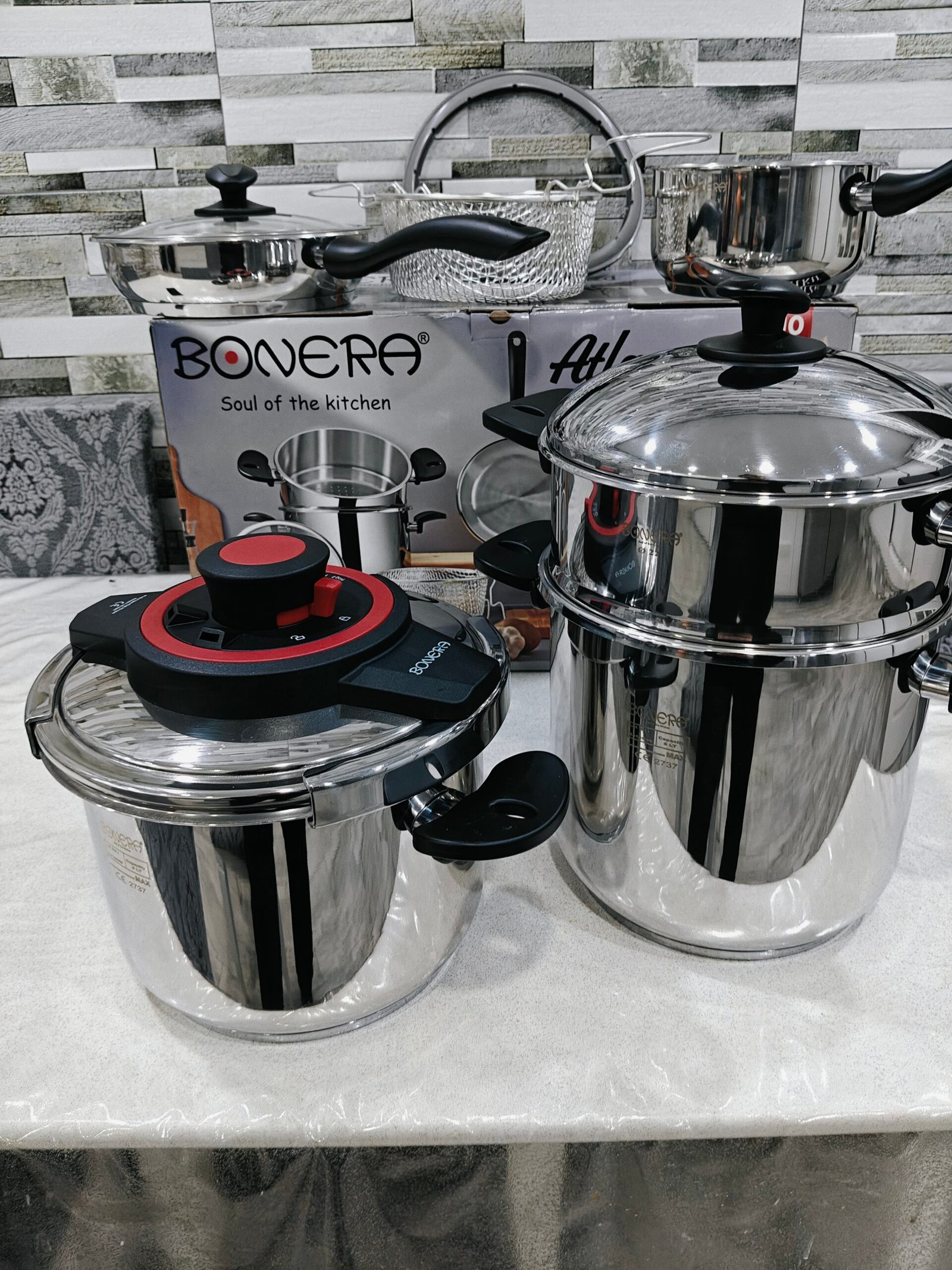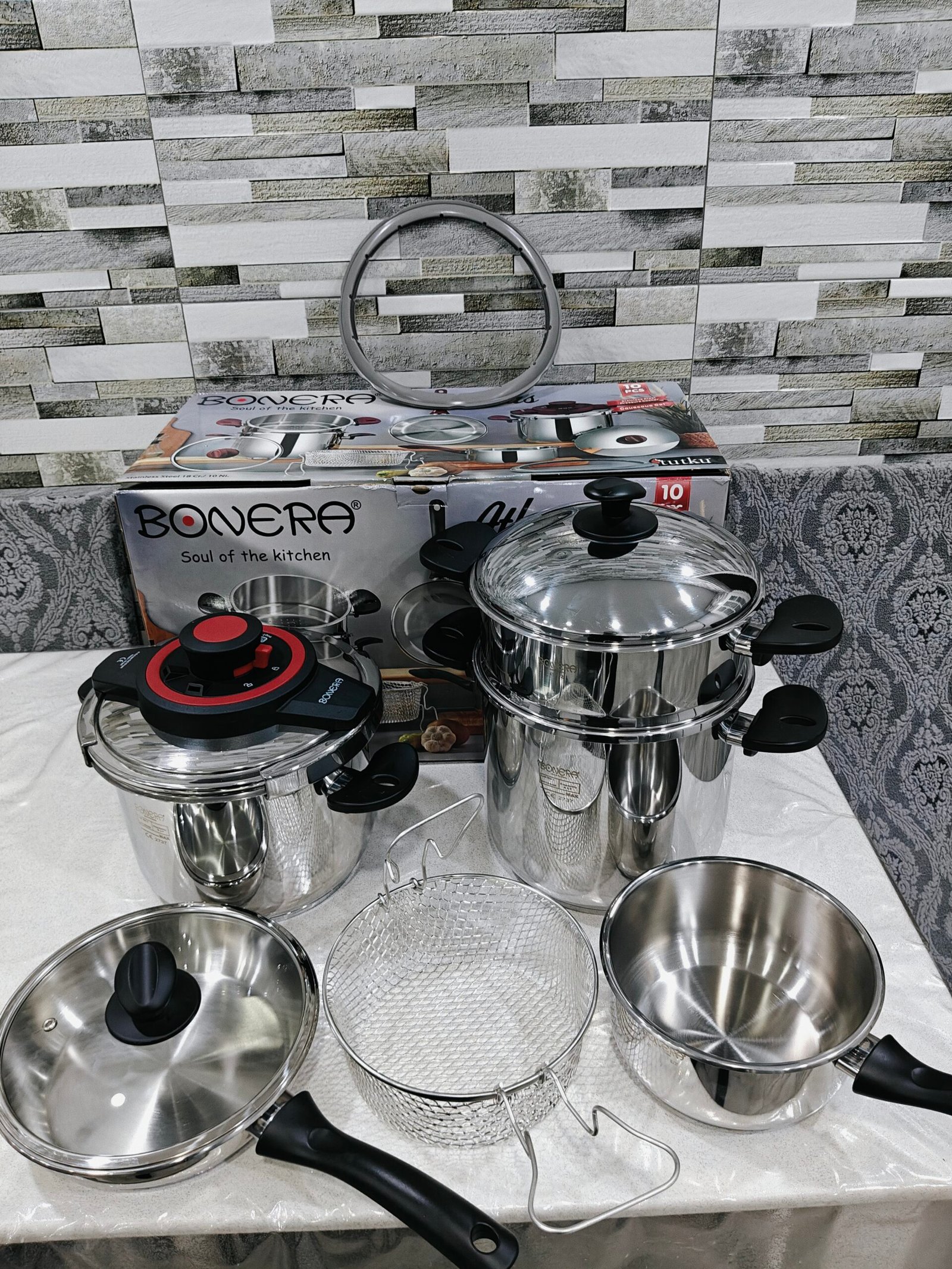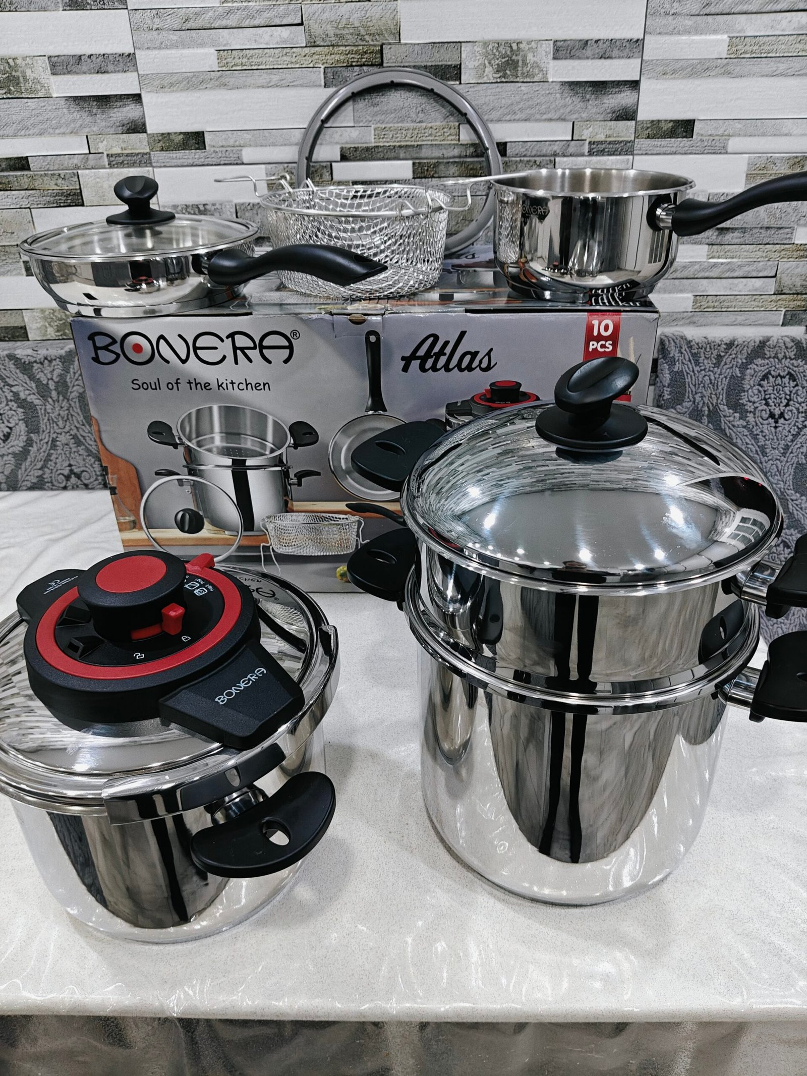 Pack cocotte 10 pieces BONERA 🇹🇷🇹🇷 original turque contient cocotte 6L + cocotte 8L + couscousier + poêle ( sauteuse ) + casserole + panier friteuse + couvercle en verre + couvercle en inox + joint supplémentaire