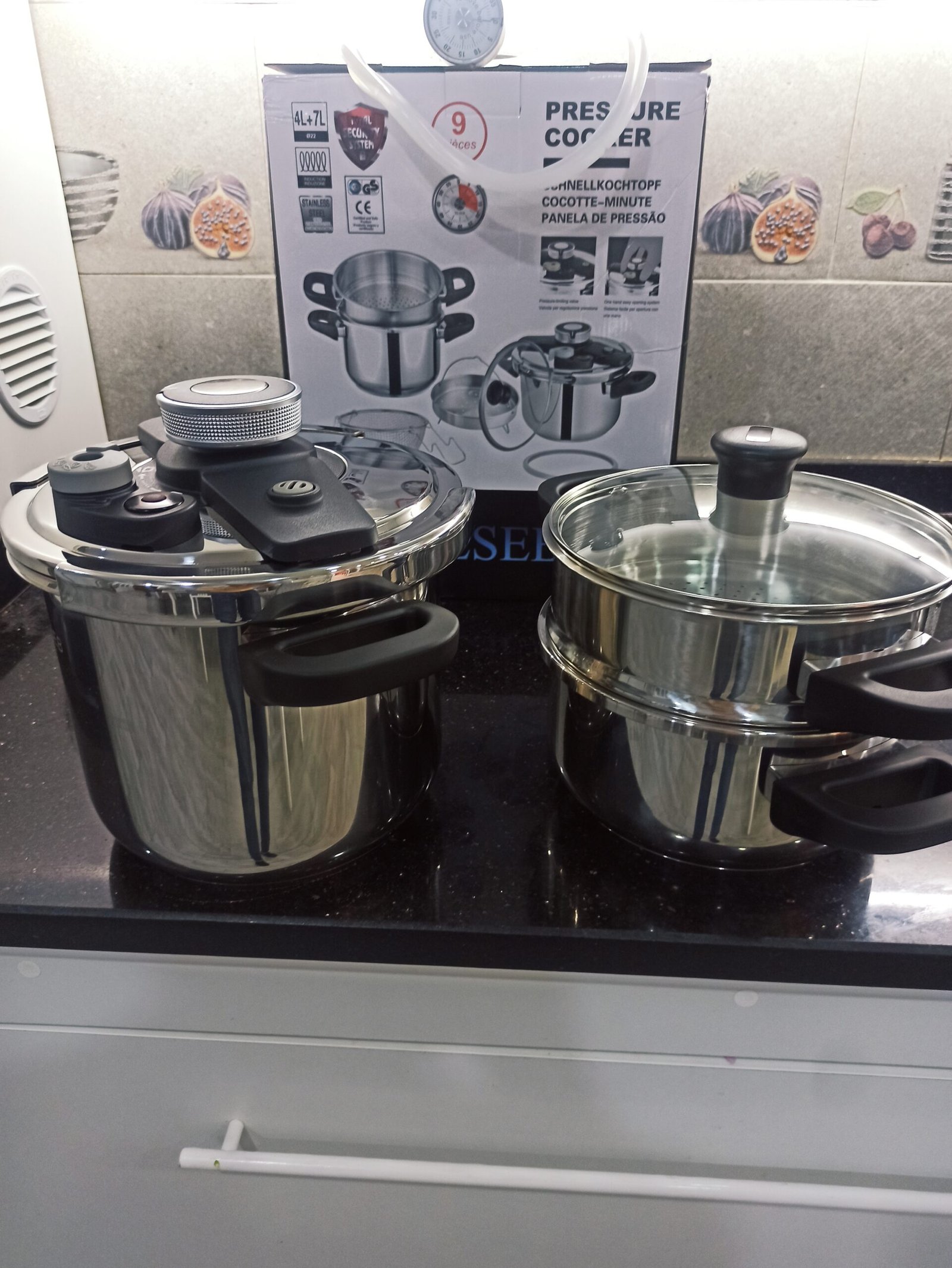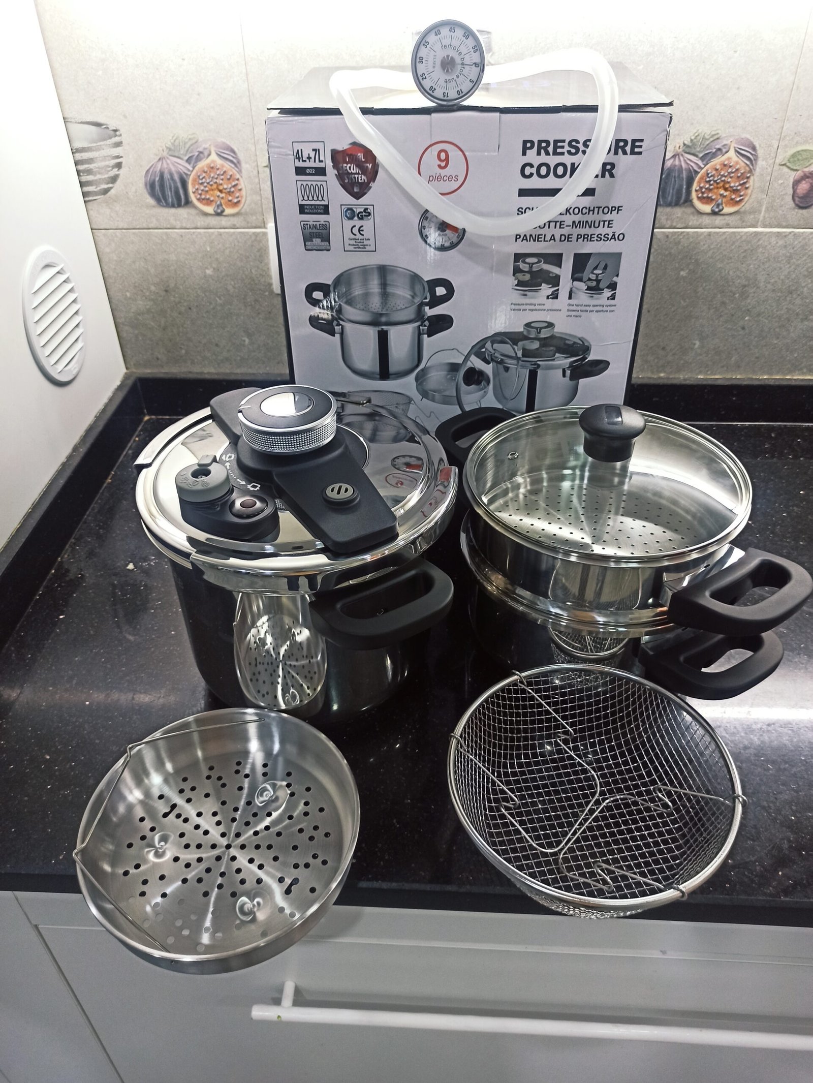 Ce set autocuiseur + faitout 5 en 1 en inox contribuent à une cuisson rapide et homogène des aliments ; avec une ouverture/Fermeture facile ; 3 niveaux de pression ; Sécurité par blocage automatique ; 3 niveaux de sécurité ; Inox 18/10 ; Compatible avec les feux à induction / Gas / électrique ; Polissage satiné à l’intérieur, miroir à l’extérieur ; Légumier et support légumier en inox ;Couvercle en verre.